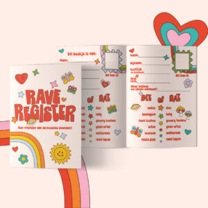 Zelfstandig ontworpen vriendenboekje voor connecties op festivals. Een passie projectje wat mijn interesse in sociale interactie en creatieve vormgeving weerspiegelt.