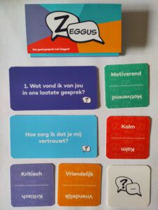 Feedback geven en ontvangen is lastig en kwetsbaar. Om hiermee te kunnen oefenen, is Zeggus ontworpen. Een tool waarmee feedback geven meer handvatten krijgt, waardoor beide partijen van het gesprek ruimte krijgen om hiermee aan de slag te gaan. Beide partijen beantwoorden vragen en geven elkaar gestructureerd feedback, waarbij ruimte is voor nuance, verschil en openheid.